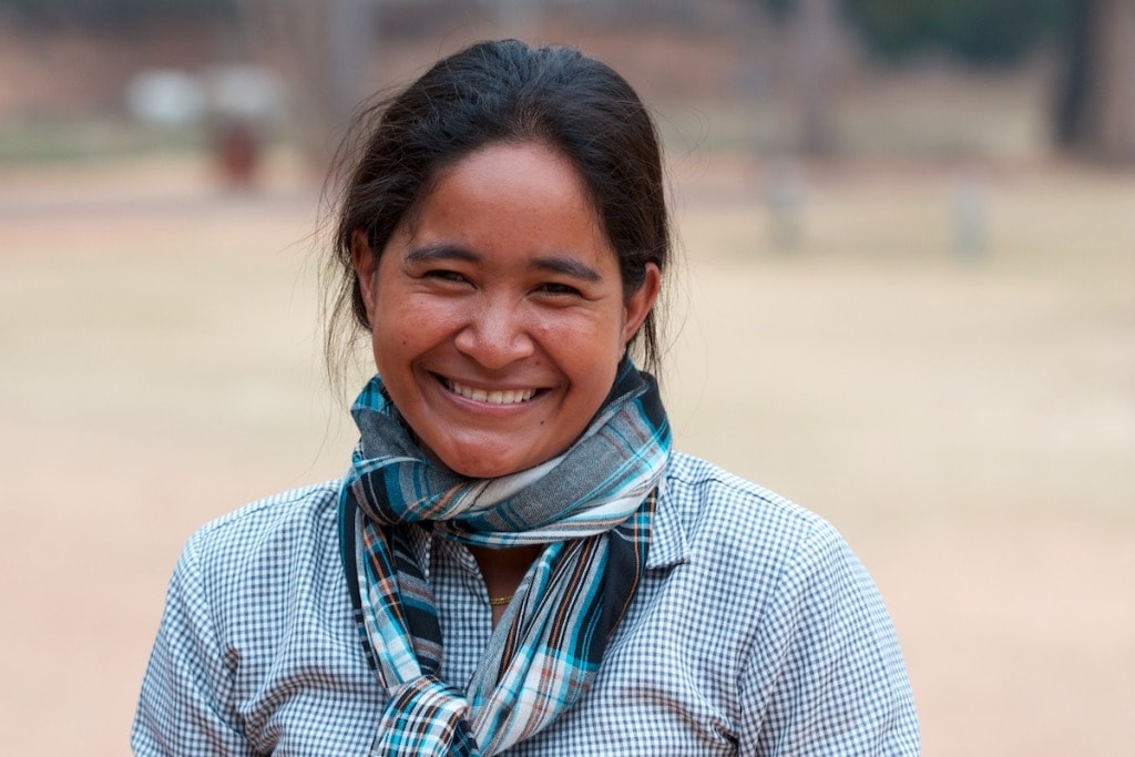 Smiling Cambodian woman in late 20s who works as street vendor near Angkor Wat